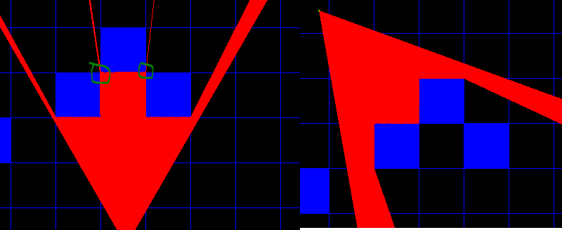 作为第一种观点,它似乎运作良好,但我正在努力解决一个问题,我不知道会发生什么。事实上,墙壁的边缘是互相交叉的,有时光线也没有探测到任何墙壁。