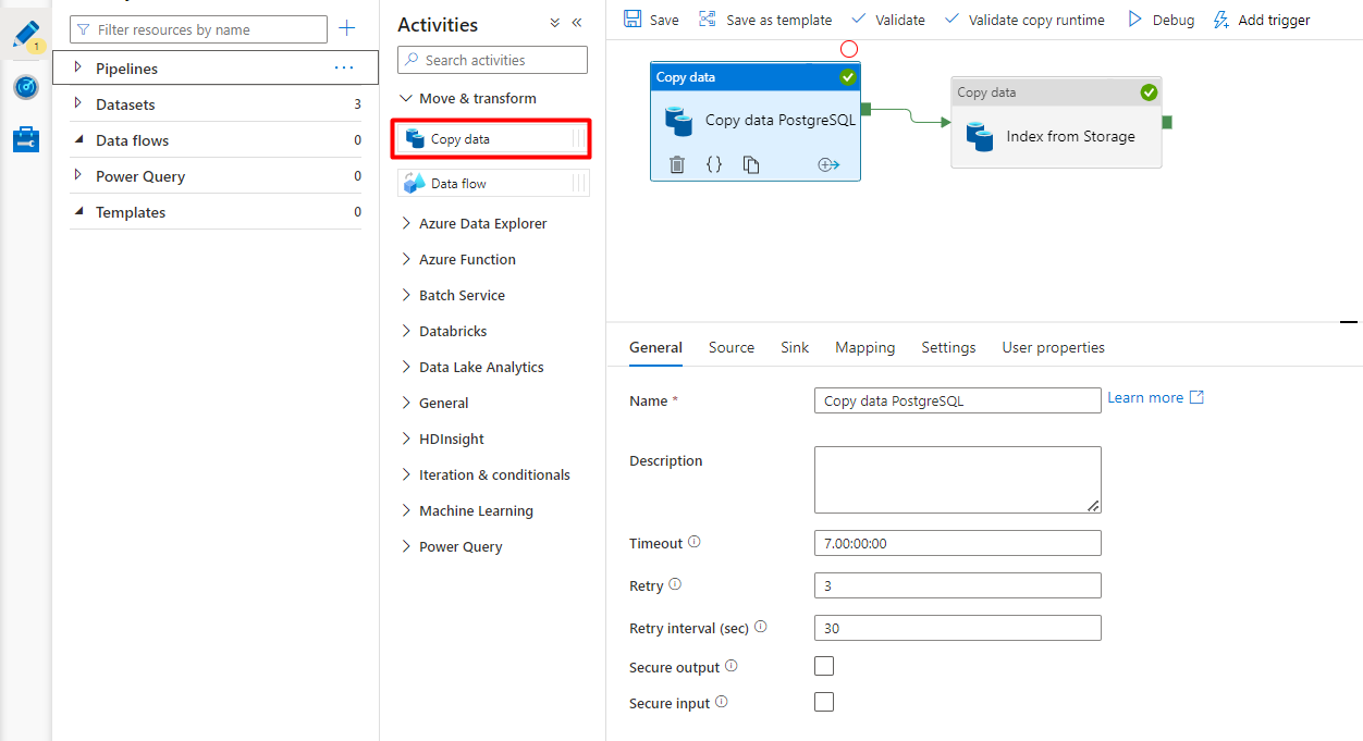 除了上面涉及到在您的端进行编码的答案之外,还有一个解决方案可以使用Azure数据工厂PostgreSQL连接器实现,它使用一个自定义查询来跟踪最近的记录,并创建一个管道活动,该管道活动会深入到Azure Blob存储帐户。然后,在Data中,您可以链接到一个复制到Azure认知搜索索引的管道活动和向管道中添加触发器,以便在指定的时间运行。