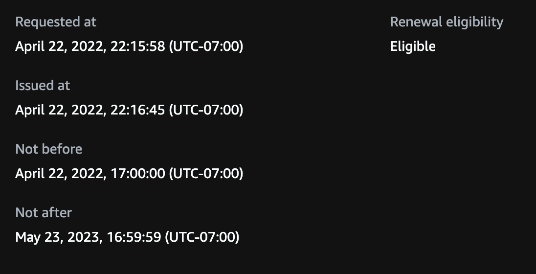 我从AWS证书管理器获得了我的域名的SSL证书。我已将上述证书附加到CloudFront发行版中。