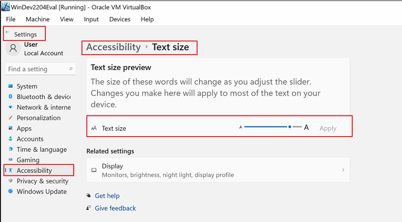 在VM中,转到设置-->可访问性->文本区域,然后您可以调整大小
