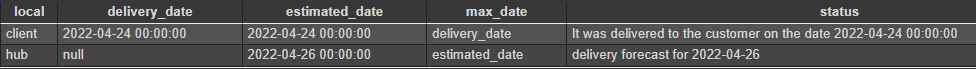 0 client 2022-04-24 00:00:00 2022-04-24 delivery_date It was delivered to the customer on the date 2...
