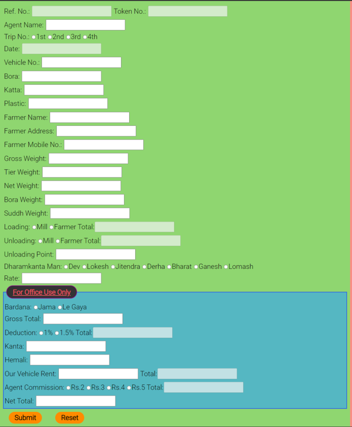 我还想为诸如LOADING,、UNLOADING,、、DEDUCTION,等字段添加单选按钮,当用户选择给定的选项之一时,值将被计算出来。