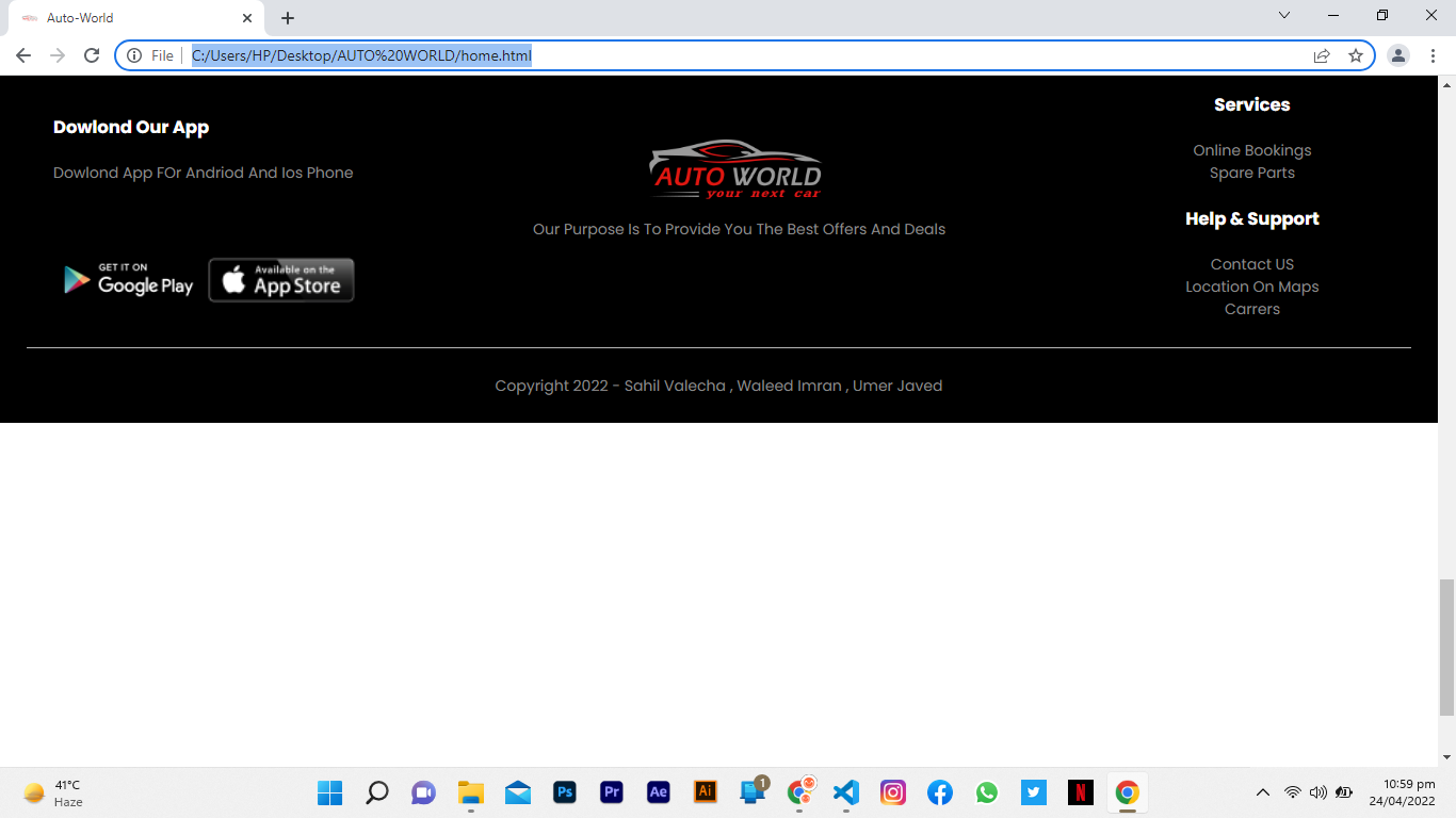 <div class="copyright"><p>Copyright 2022 - Sahil Valecha , Waleed Imran , Umer Javed</p></div>
