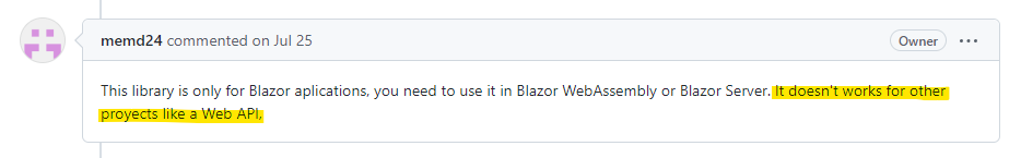从技术上讲,它是指在浏览器线程上运行。根据nuget包的作者,该包不支持除WASM和Blazor服务器之外的任何其他项目:
