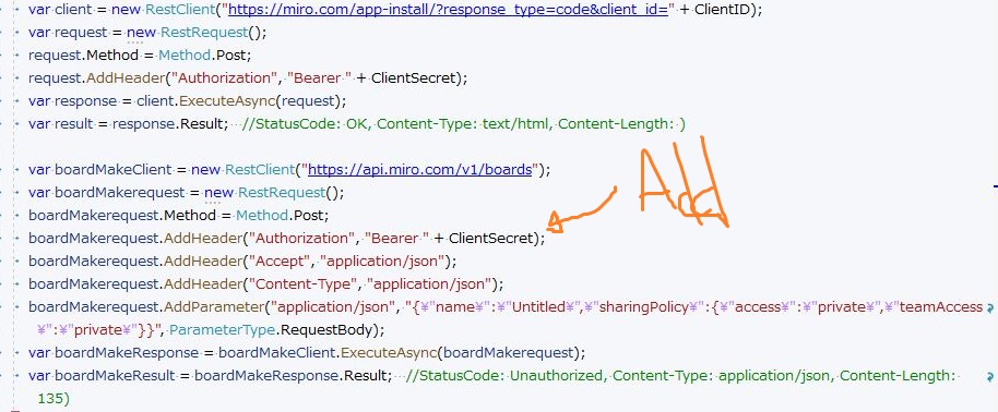 boardMakerequest.AddHeader("Authorization", "Bearer " + ClientSecret);https://stackoverflow.com/questions/72028681