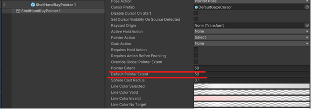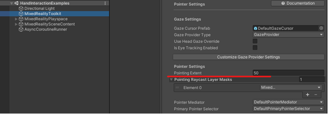 我试图扩展指针的最大深度,以便在物体可以更远的场景中使用。我已经在MixedRealityPointerProfile下设置了“指向范围”设置,这似乎没有任何效果。