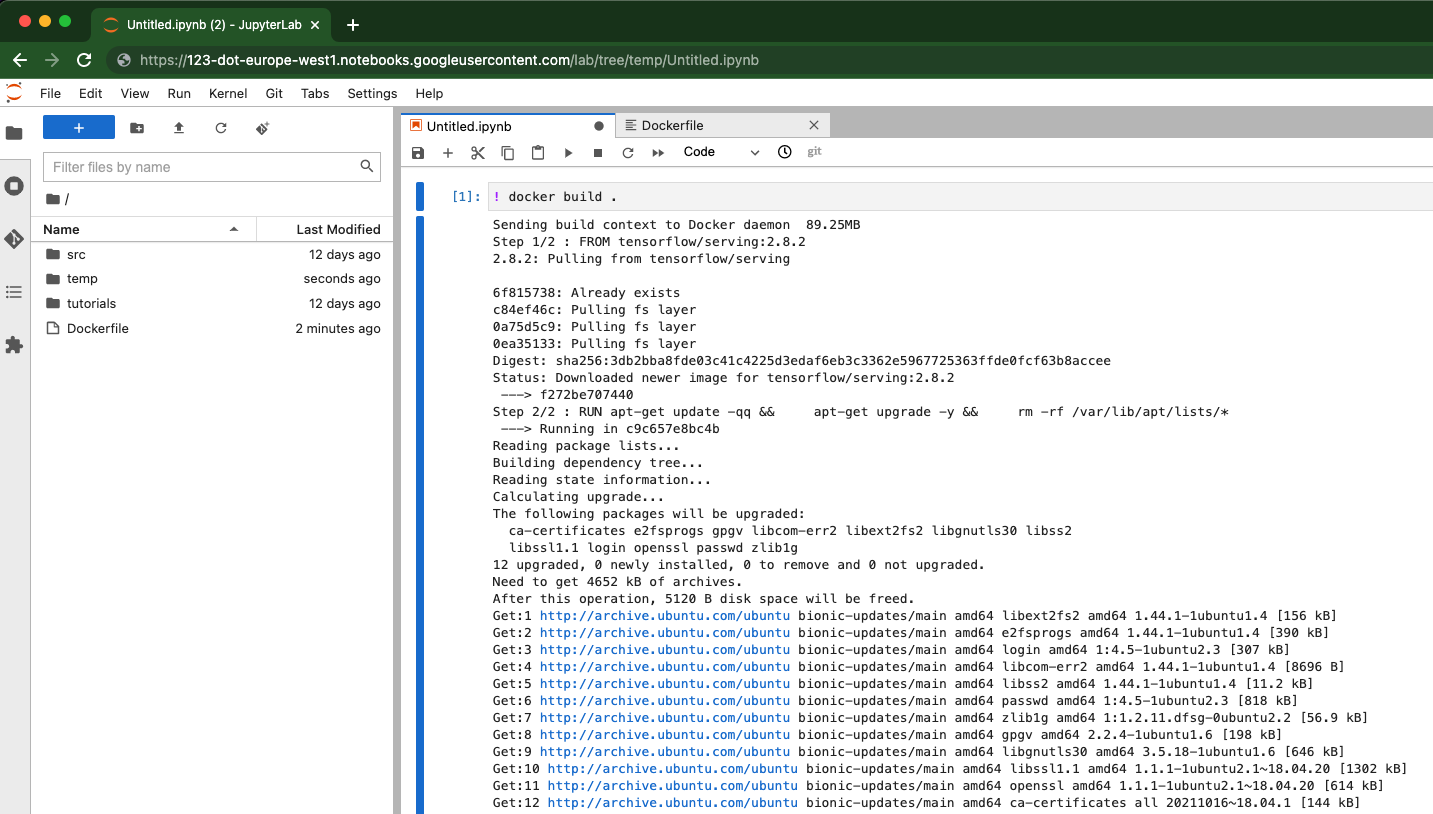 因此,您将能够在用户管理的笔记本中使用Docker命令,如! docker build .。
