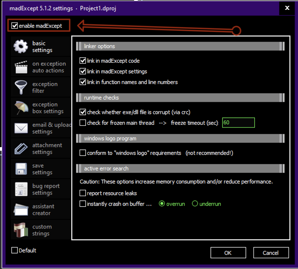 但是,我不禁想知道,为什么您在使用命令行编译器时确定启用了madExcept?