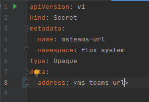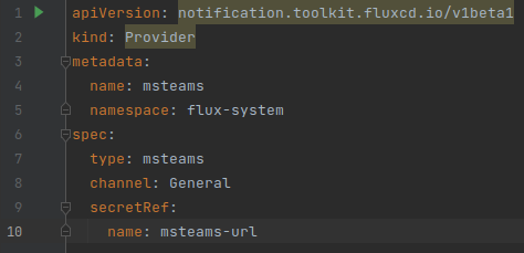 因此,首先,我还没有在Microsoft Team UI:https://fluxcd.io/docs/components/notification/provider/#ms-teams中创建一个传入的web钩子。