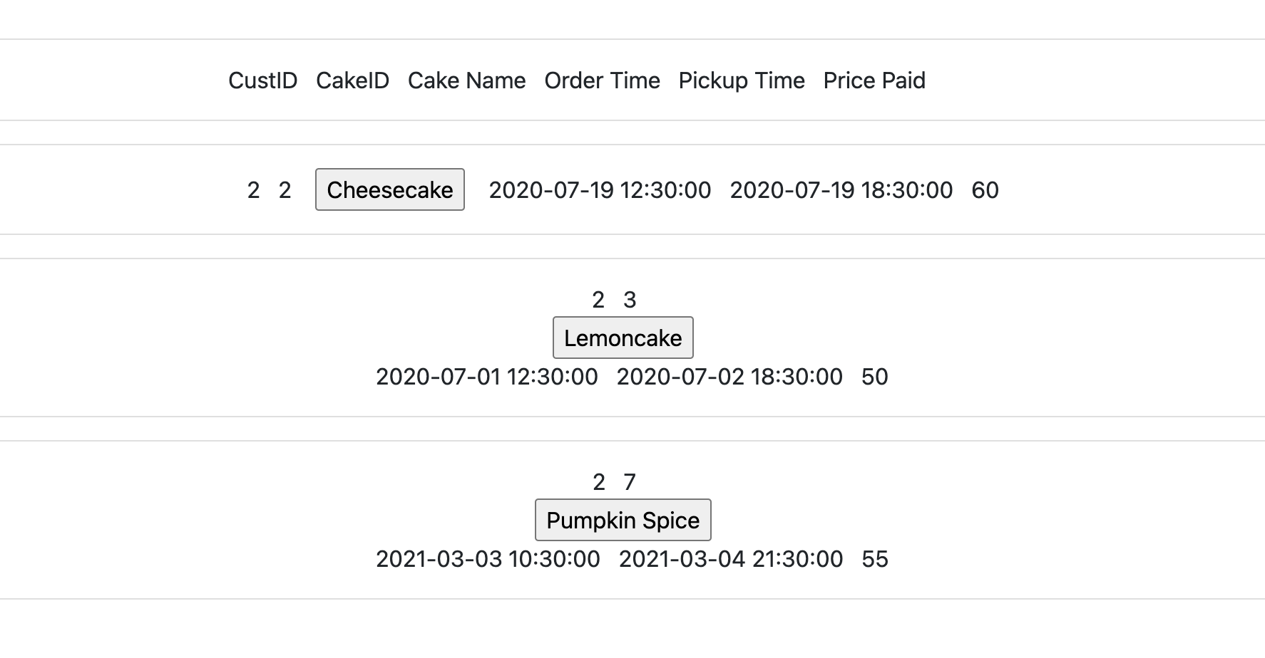 "Cake Name", str_repeat(' ', 3), "Order Time", str_repeat(' ', 3),
