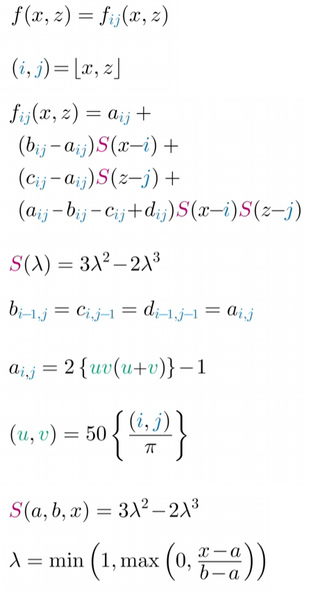 我正在努力学习如何将这些技术应用于sdf呈现来自用数学画风景的景观。在视频中,Quilez展示了这个公式: