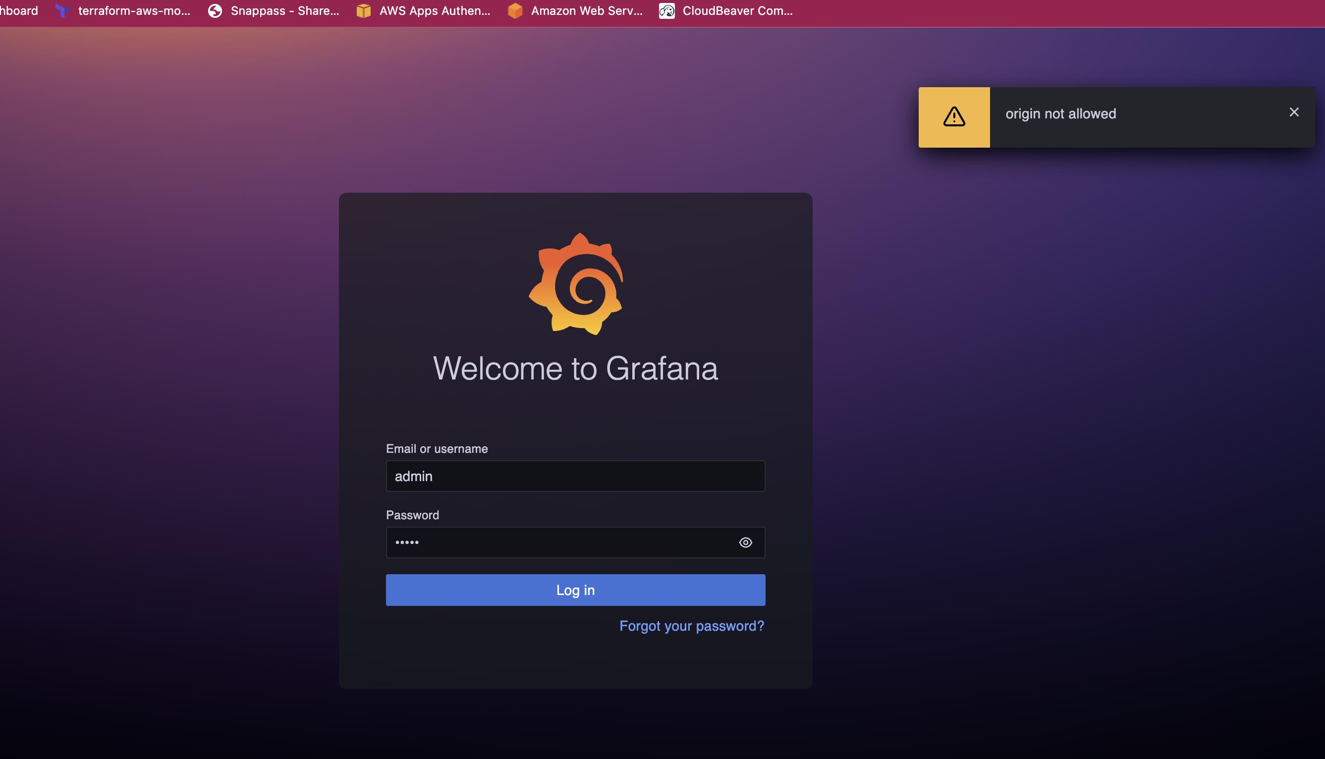 Grafana必须在请求头中接收正确的Host头。我猜你的“单点代理”不会那么做的。你没有提供可重复的例子(当你想帮忙的时候,为什么不提供),所以这只是猜测而已。