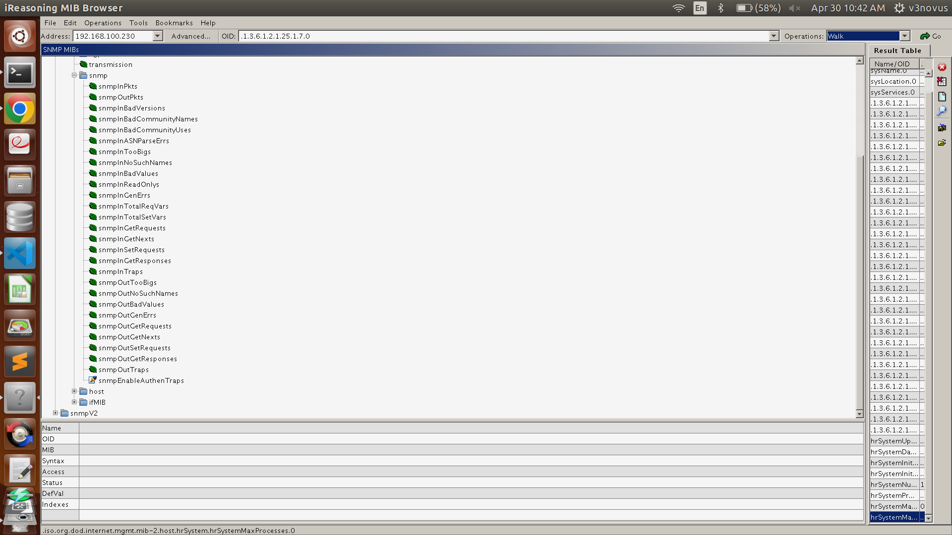 然后,在重新启动SNMP守护进程后,我观察到它没有在MIB浏览器中反映,如下图所示,