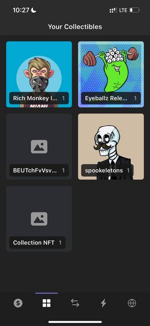 在NFT屏幕上,它写着"Collection NFT“,只有当我点击集合(最后一个)时才会显示实际的图像。