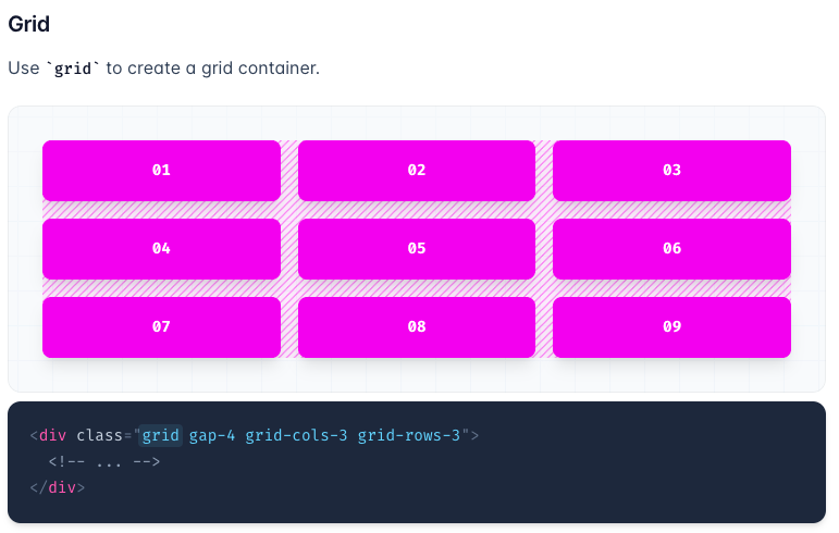 我建议您使用网格的顺风类实用程序来创建网格容器:https://tailwindcss.com/docs/display#:~:text=Use%20grid%20to%20create%20a%20grid%20container。