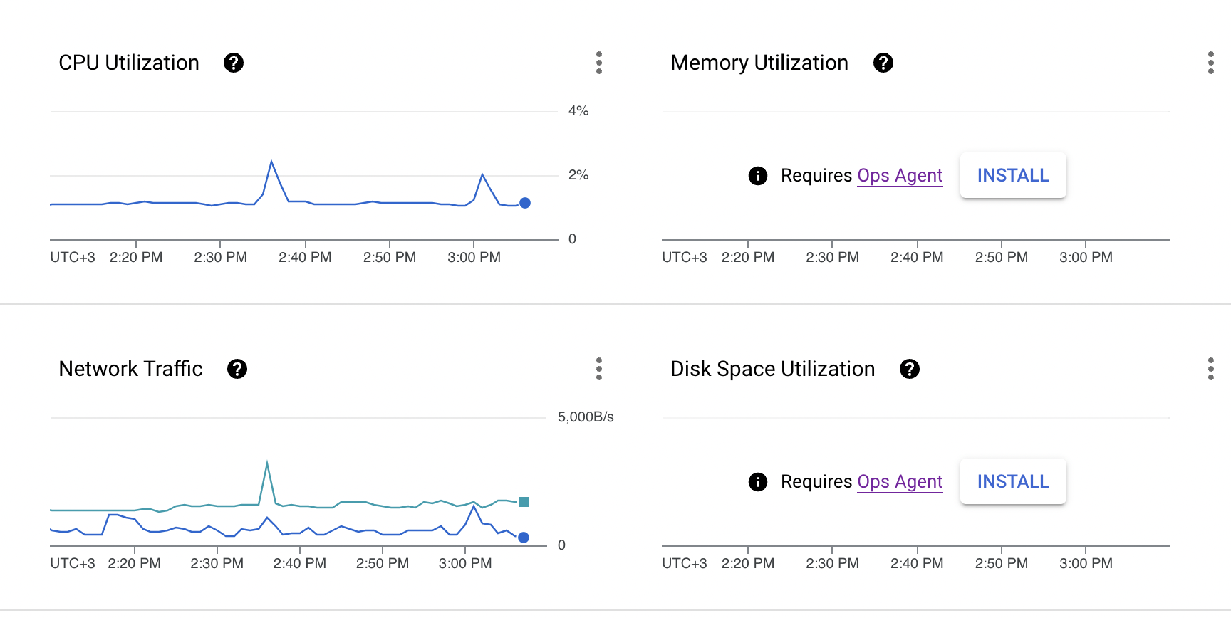 最后,您可以遵循操作代理问题的故障排除指南,以及更多的经验案例和解决方案GCP计算引擎中的内存使用监控和找不到公制的这些线程。