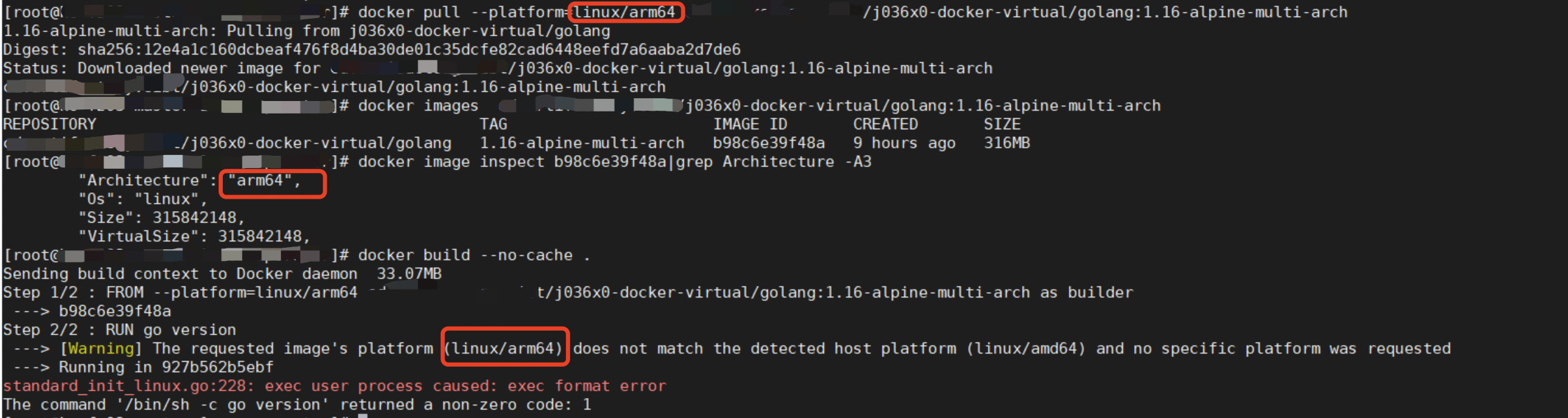 我使用FROM --platform=linux/arm64 ${base_image}强制使用arm64映像,但它不起作用。然后我检查了这台机器上的图像,发现图像的弓形是amd64,所以我怀疑它与本地图像有什么关系。