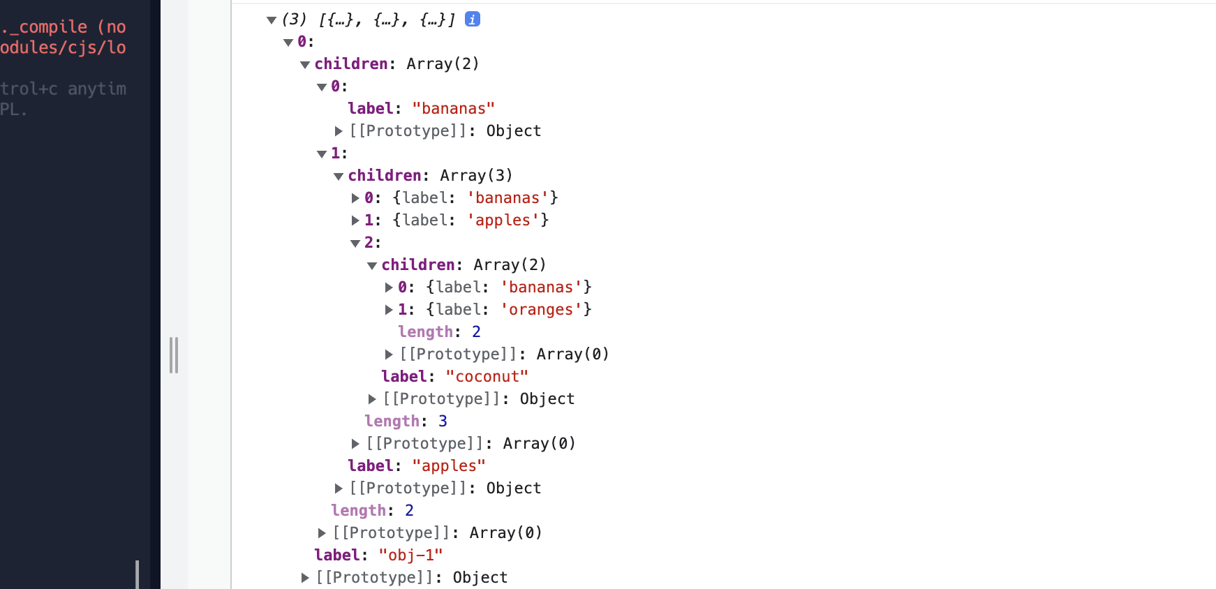 {label: 'obj-1', children: [ {label: 'bananas'},{label: 'apples', children: [
