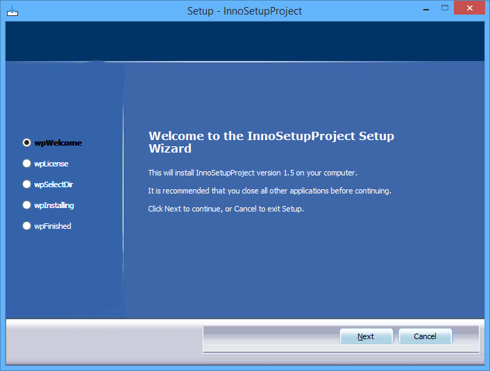 pageCaptions := ['wpWelcome', 'wpLicense', 'wpPassword', 'wpInfoBefore', 'wpUserInfo', 'wpSelectDir', 'wpSelectComponents', 'wpSelectProgramGroup', 'wpSelectTasks', 'wpReady', 'wpPreparing', 'wpInstalling', 'wpInfoAfter', 'wpFinished'];