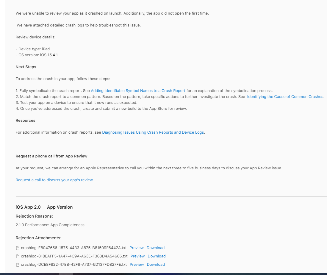 已经十天了。我试过在网上到处搜索。但这并不能解决问题。我还使用Microsoft.AppCenter.Crashes来捕获错误。然而,它没有显示错误。在xcode (13.3.1)模拟器上,它工作得很好。