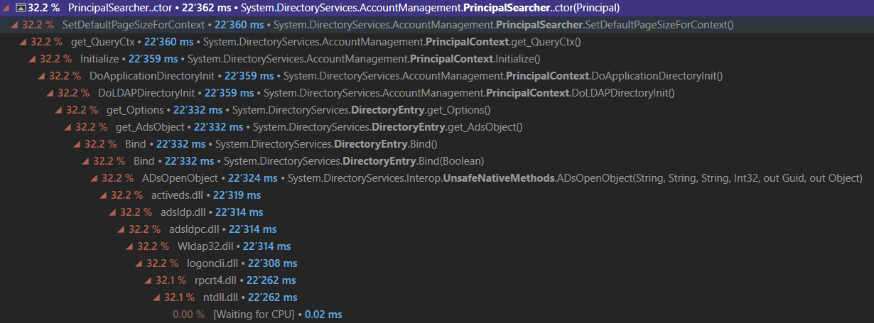var result = principalSearcher.FindAll();当我进行性能分析时,我会得到以下结果: