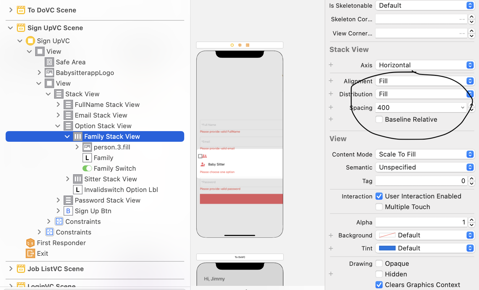 我已经找到了这个问题的根源。实际上,堆栈视图导致了问题,因为我有很高的间距值。把它降到适当的小价值解决了这个问题。