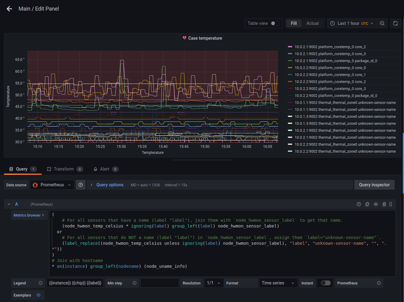 我试图用Prometheus的hwmon和Grafana来绘制服务器的温度图。