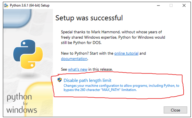 确保禁用Windows中的路径长度限制: