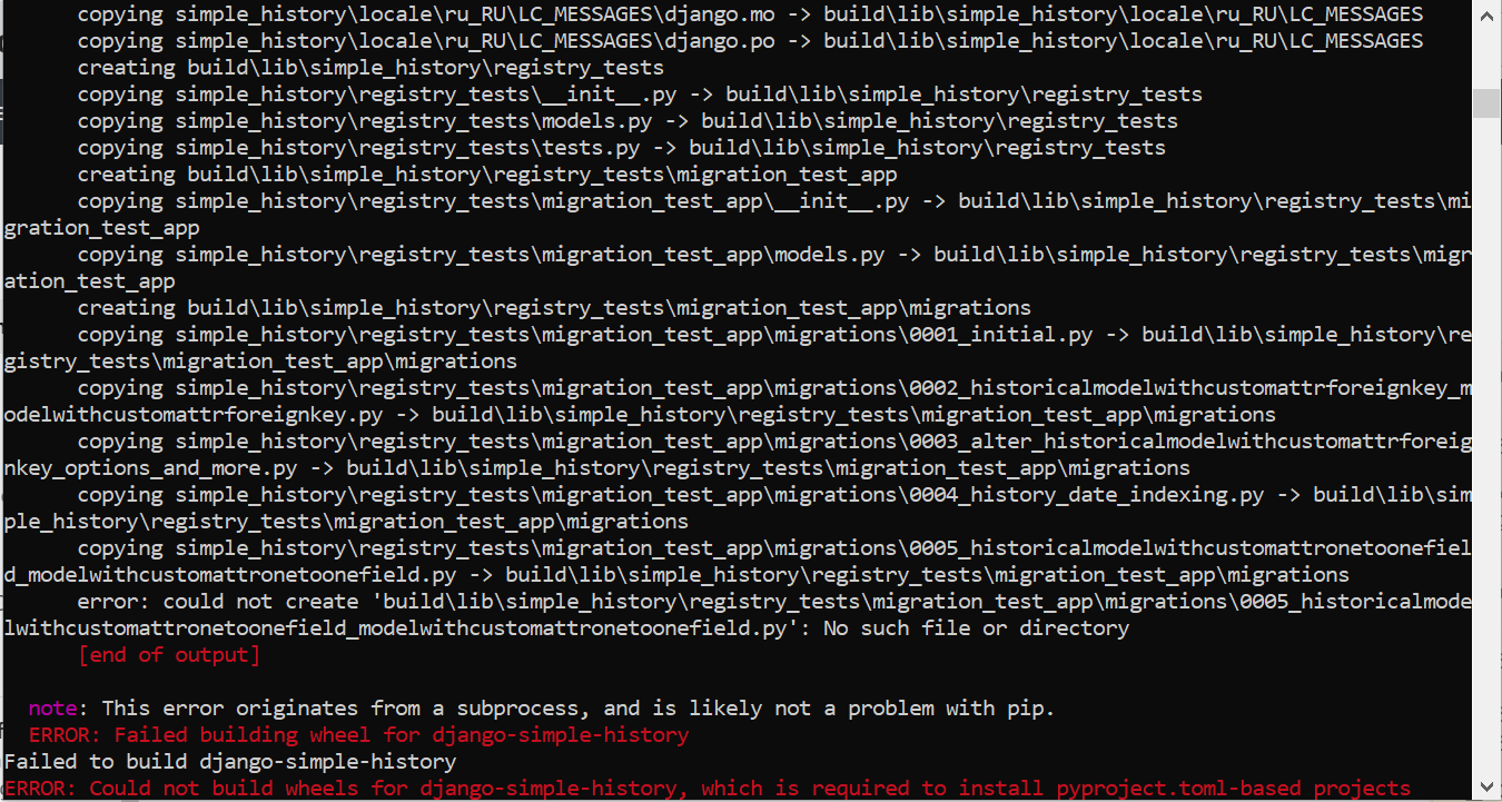 无法为django构建轮子--简单历史,这是安装基于pyproject.toml的项目所必需的