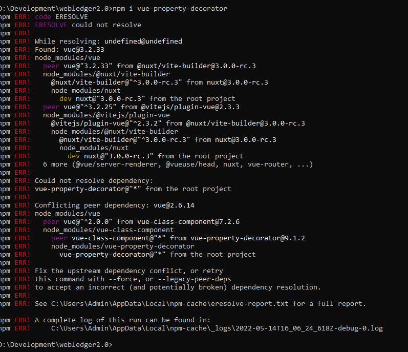 npm i vue-property-decorator --legacy-peer-depshttps://stackoverflow.com/questions/72241980