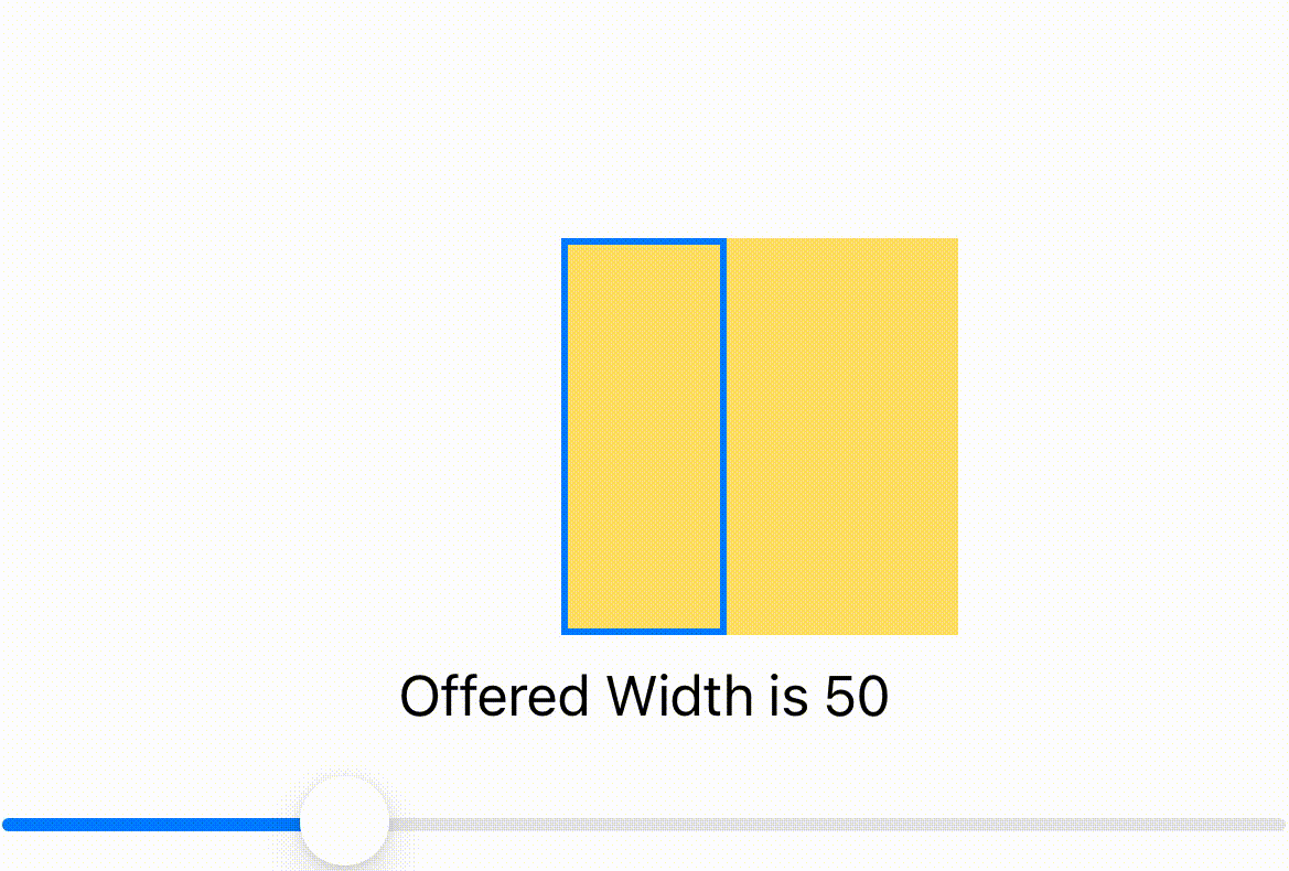 }在这个例子中,SubView有一个黄色的填充和一个最小的框架宽度,而内部的矩形只是接受在滑块上设置的任何宽度。它也不再需要GeometryReader了。它的外观和行为都是一样的,但是没有一个视图超过其父视图的界限。