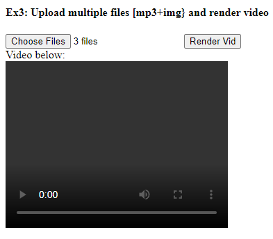 我的代码托管在上面的repo中,现在我有一个占位符视频元素,在用户上传3个文件并单击“呈现”按钮后,我想将其更改为已完成的视频。