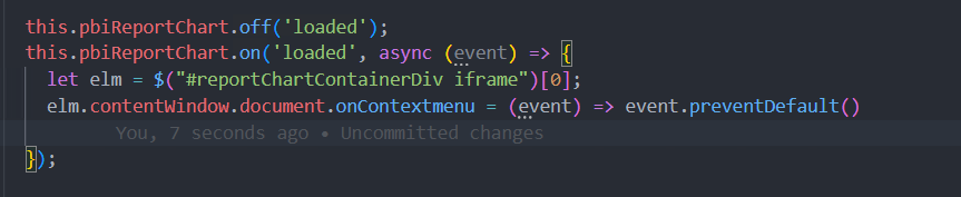 我正在使用powerbi客户端将powerbi报告嵌入到Angular8项目中。我不想显示正确的上下文菜单上的权力BI视觉禁用右击角侧(突出显示在红色方框)。