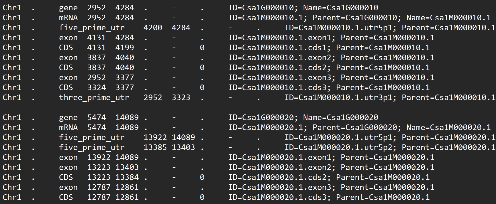 下面是我的gff文件的一个示例:
