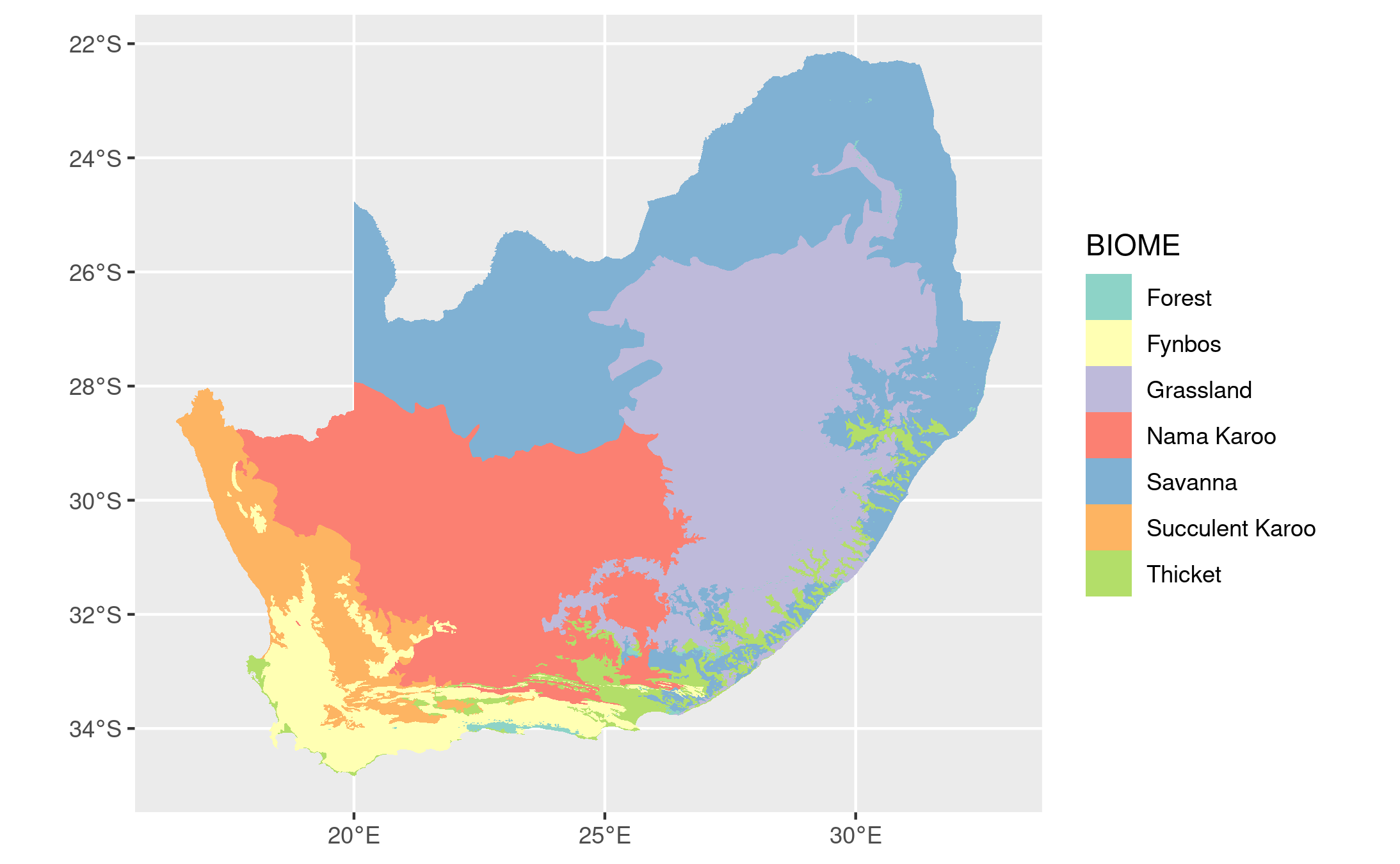 geom_sf(aes(fill = BIOME), lwd = 0) +