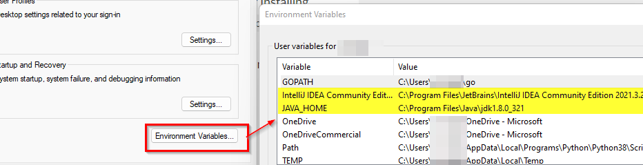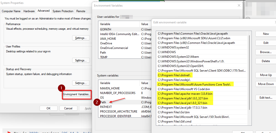 单击>变量> Open并单击️on Environment变量>检查系统中可用的这些路径: