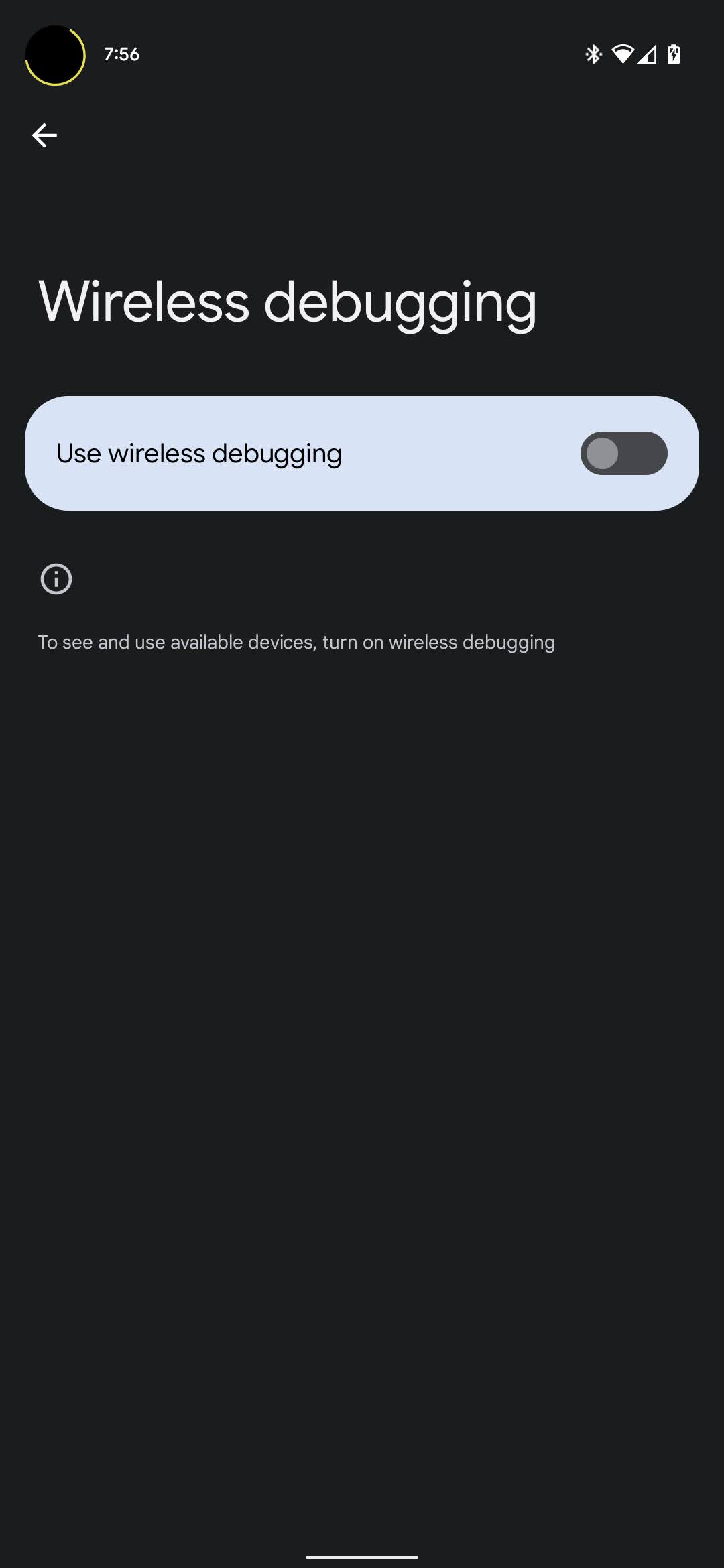 我正在尝试构建无线调试屏幕的快捷方式,到目前为止,我只打开了Developer Options子菜单。