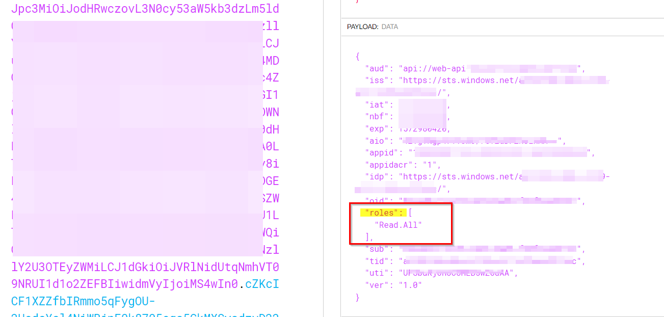 因此,现在当请求一个默认范围为api://<app id>/.default的令牌时,角色声明中将返回“作用域”。
