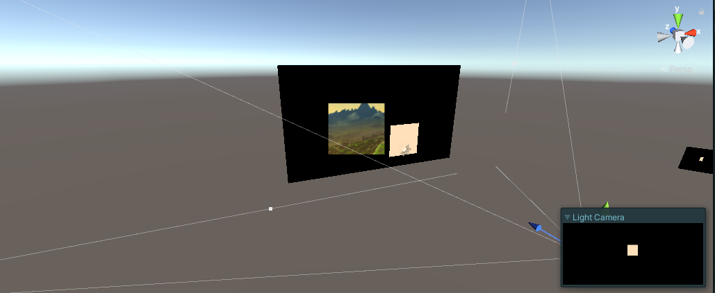注意,在游戏视图中,由于光摄像机的设置与游戏摄像机具有相同的位置/旋转/透视设置,所以看起来很好: