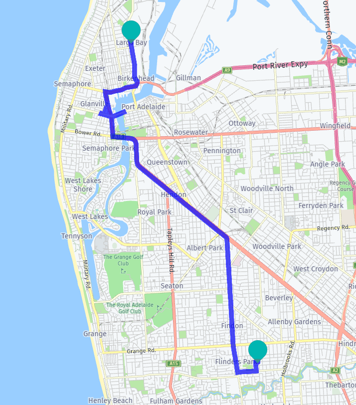 我通过的是完全相同的一组路径点。-34.90979,138.5403经:-34.85191,138.49499经:-34.851,138.49494经:-34.845,138.49494经:-34.84965,138.49478经:-34.848,138.4947经:-34.84765,138.49459经:-34.84681,138.49448经:-34.84681,138.49448经:-34.84654,138.49439经:-34.84556,138.49392,经:-34.84252,138.49306,转至-34.84131,138.49272