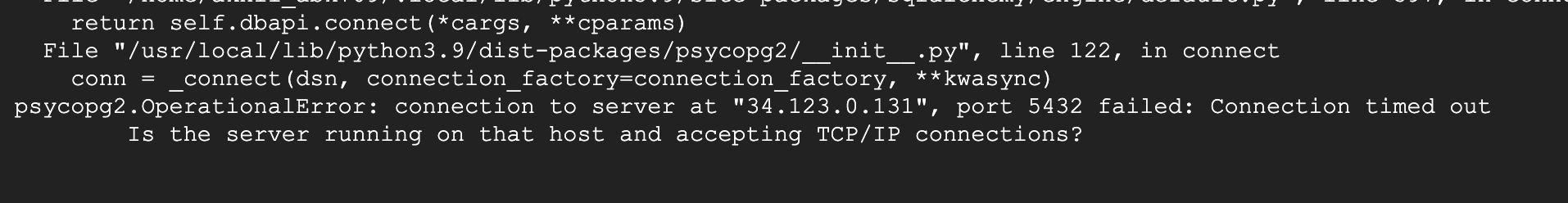 我正在尝试用云SQL数据库实现烧瓶迁移。为此,我在云sql上创建了一个PostgreSQL实例。以下是我的app.py文件