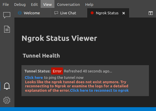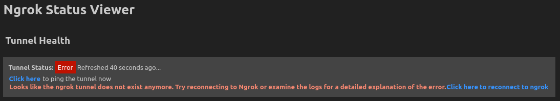 仿真程序"Ngrok状态查看器“中的错误:Looks like the ngrok tunnel does not exist anymore. Try reconnecting to Ngrok or examine the logs for a detailed explanation of the error.