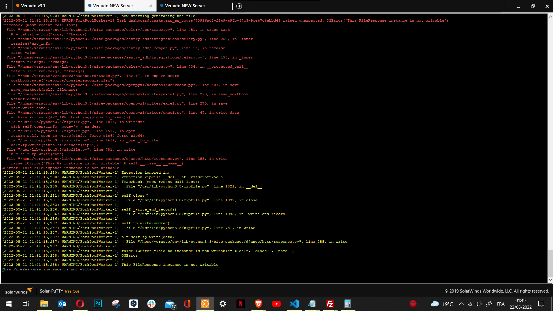 我在Windows和Linux上(在数字海洋上)都试过了,我也得到了同样的错误。你能告诉我我做错了什么吗?excel函数不正确吗?因为我确实对其进行了修改,以防止其下载(将HttpResponse替换为FileResponse)。或者是RabbitMQ和芹菜?