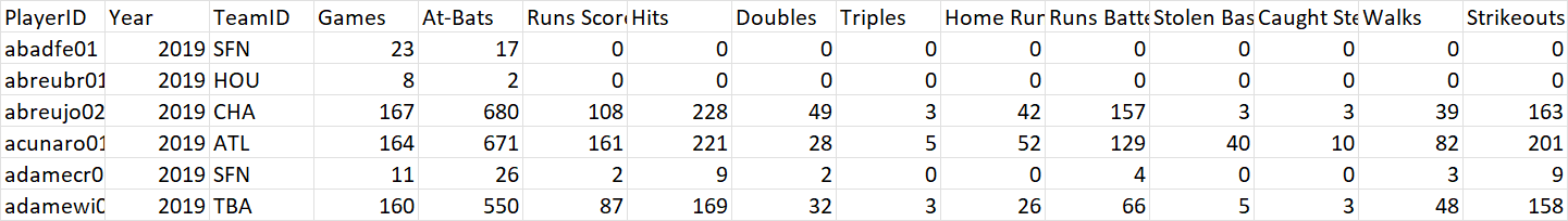 我有一个棒球数据df,其中一些列名是: