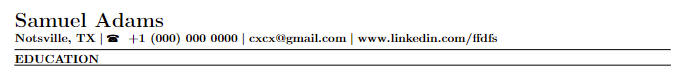 \textbf{Notsville, TX} $|$ \textbf{\phone \ \ +1 (000) 000 0000} $|$