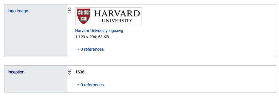 维基数据API提供基于日期的字段作为数据雪崩$类型==“时间”。例如,考虑哈佛大学的初始日期(属性值== P571):