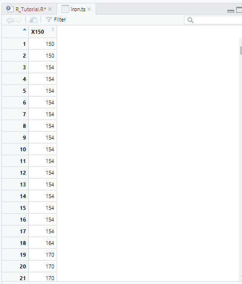 我对r是新手,我正试图对股票和大宗商品做一些相关分析。我似乎无法让任何情节或相关函数发挥作用。我有一辆CSV,有一列铁的价格,但无法标出。我认为问题与数据框架中的整数值无关,但我似乎也无法改变这一点。照片所附的是铁图的样子,我希望它看起来像一个正常的价格图表,价格作为y轴和x作为时间。
