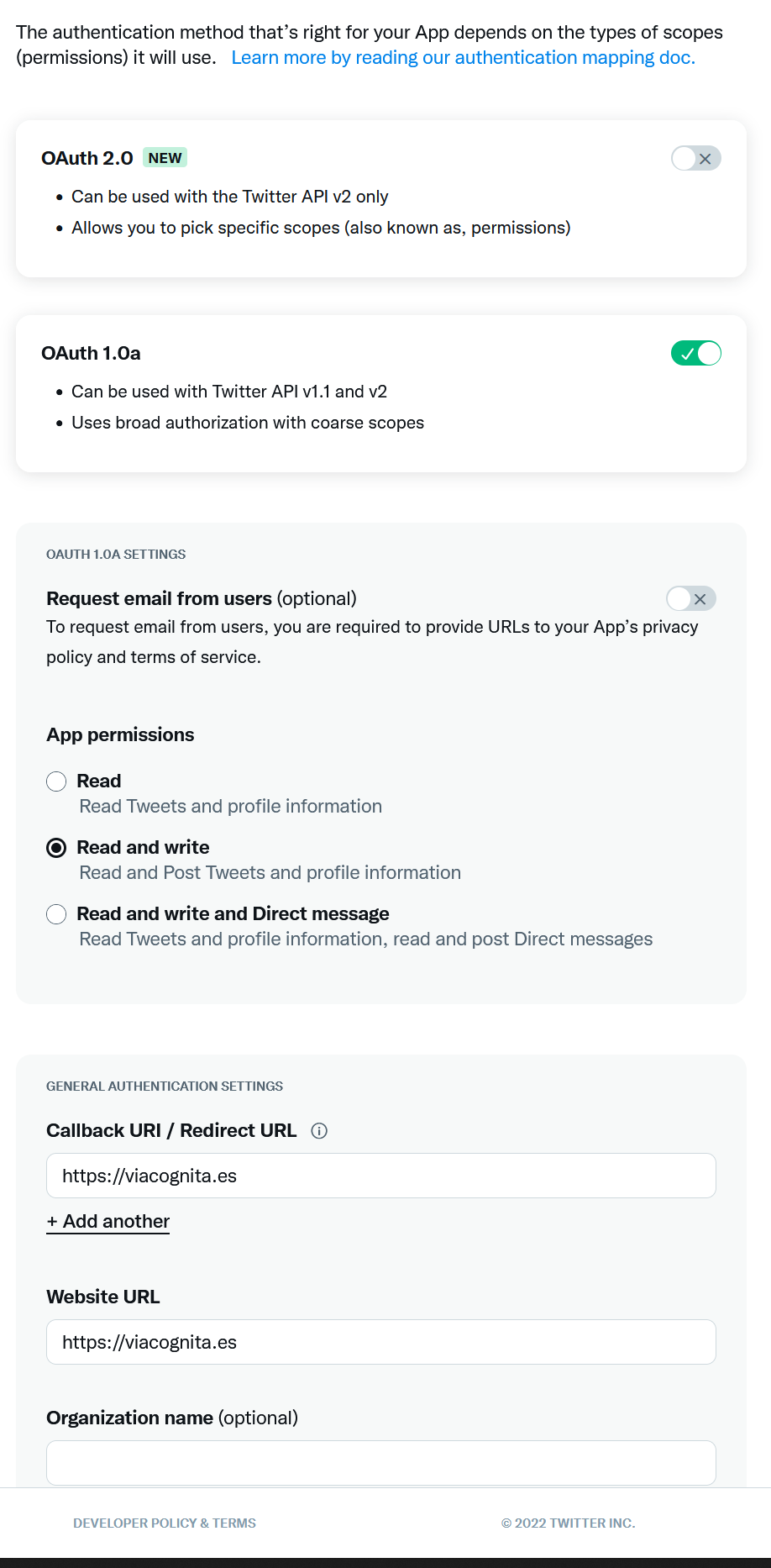 最后,您应该检查您的应用程序是否具有读写权限,并且您的访问令牌和秘密是使用这些权限生成的。