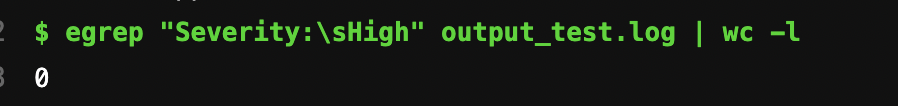 - severity_count=$(egrep "Severity:\sHigh" output_test.log | wc -l)