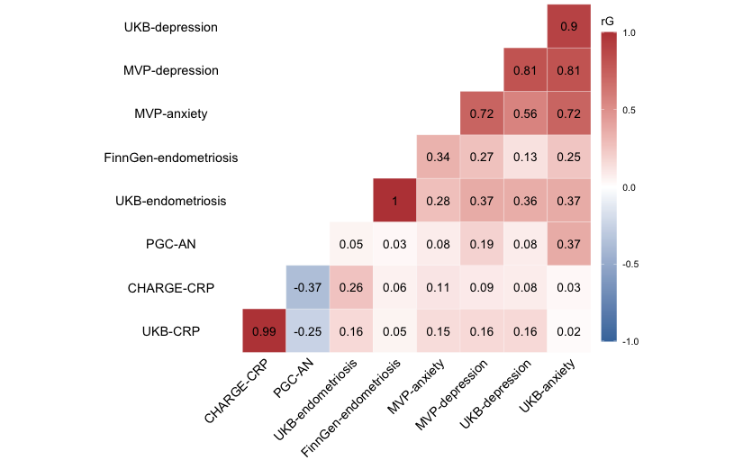 allrg <- ggcorrplot(mat_allrg, hc.order = TRUE, type = "lower",lab = TRUE, legend.title = "rG", ggtheme = ggplot2::theme_void,